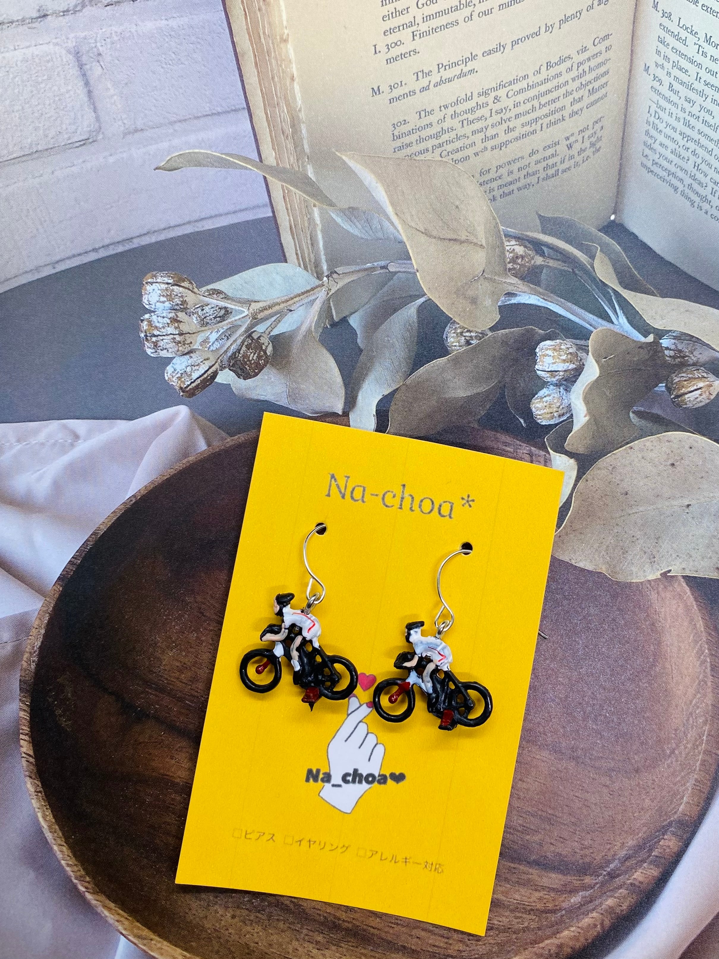 耳の下でゆらゆらと一生懸命自転車を漕ぐ可愛いピアス イヤリングです(*´꒳`*)
