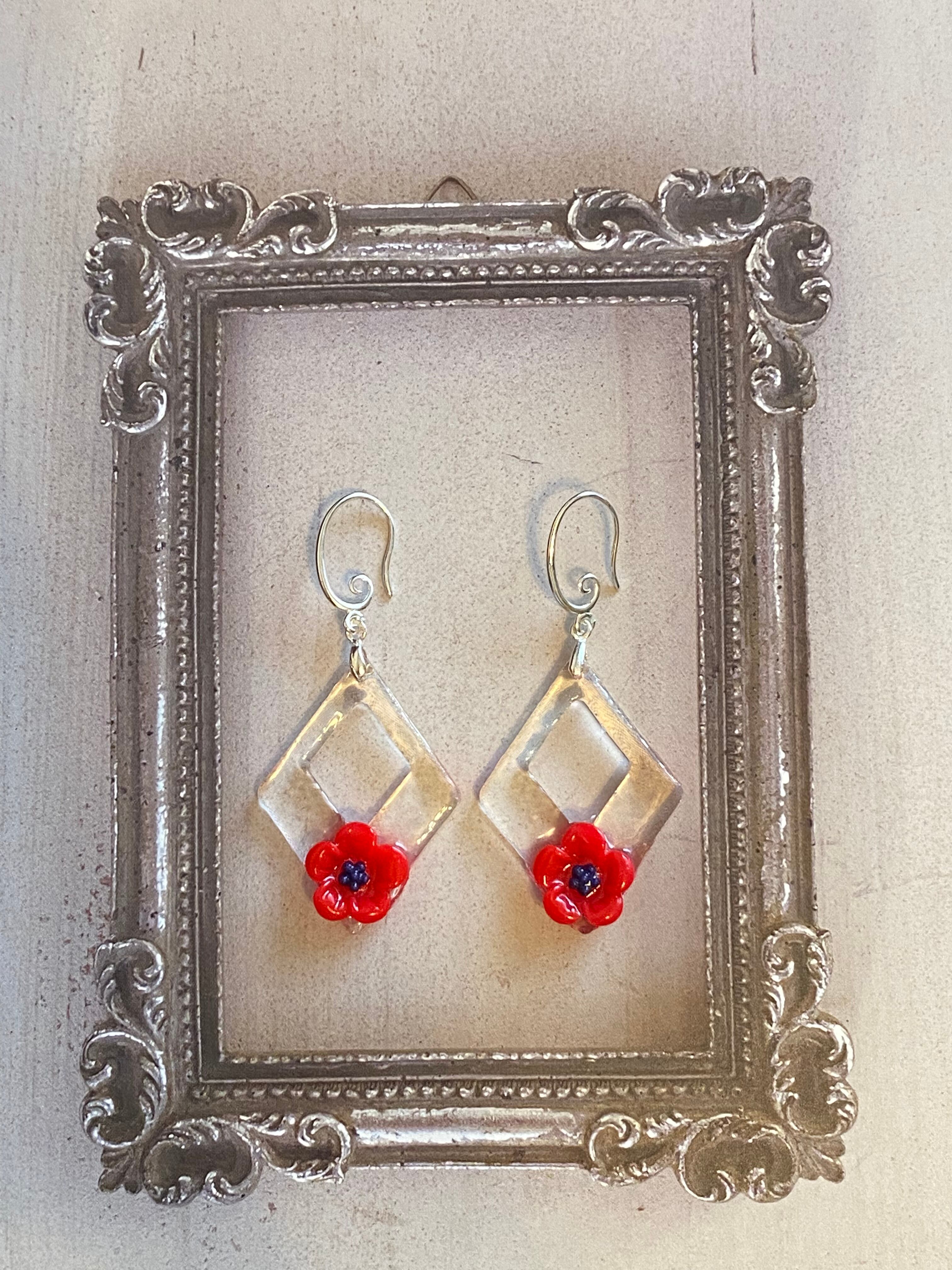 夏らしいクリアレジンに赤いお花を付けて 可愛らしく仕上げました(^-^)