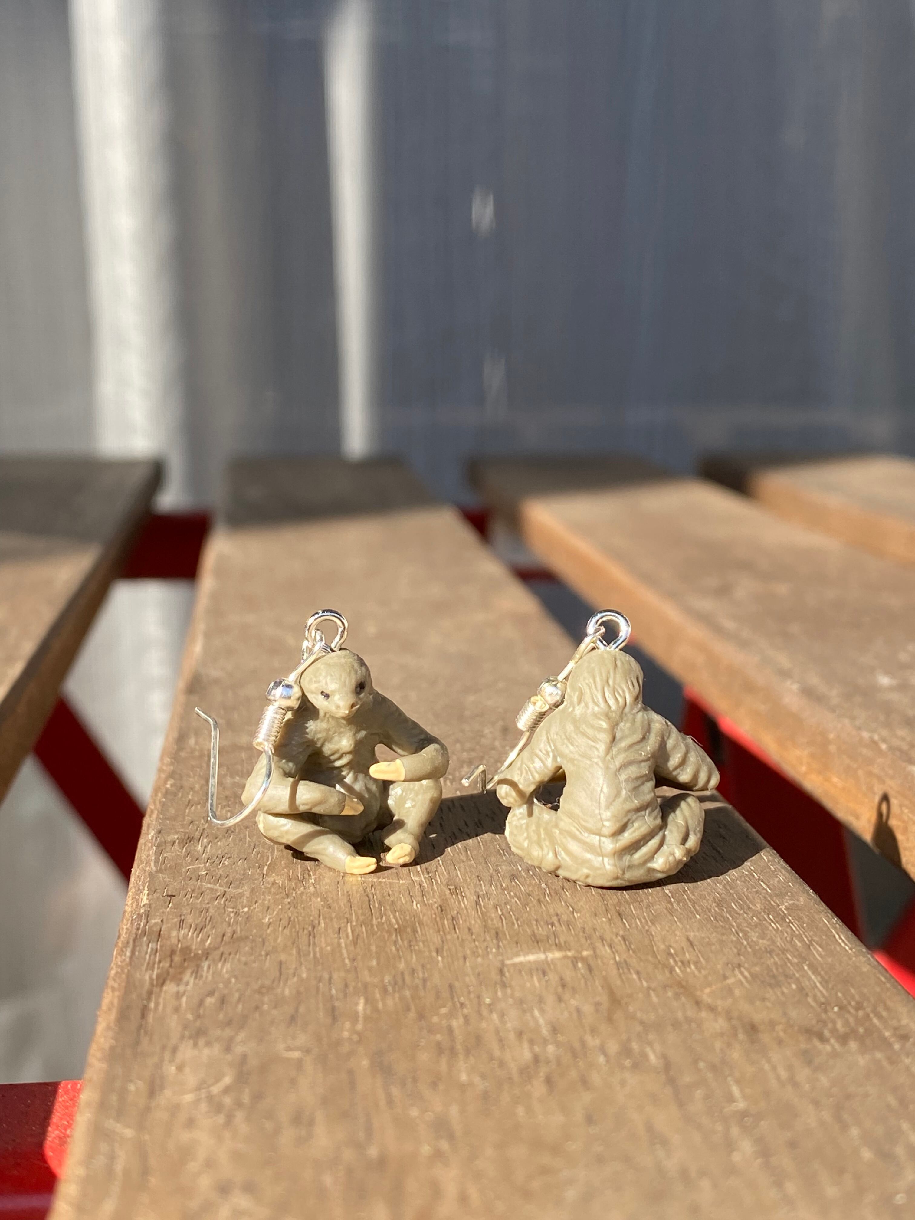 リアル ナマケモノ 猿 宇宙人 シュール 個性的 ミニチュア 面白い おもしろ グレー 灰色 動物 動物園 プレゼント 子供 ピアス イヤリング パーツ変更 アレルギー対応 ジオラマ フィギュア