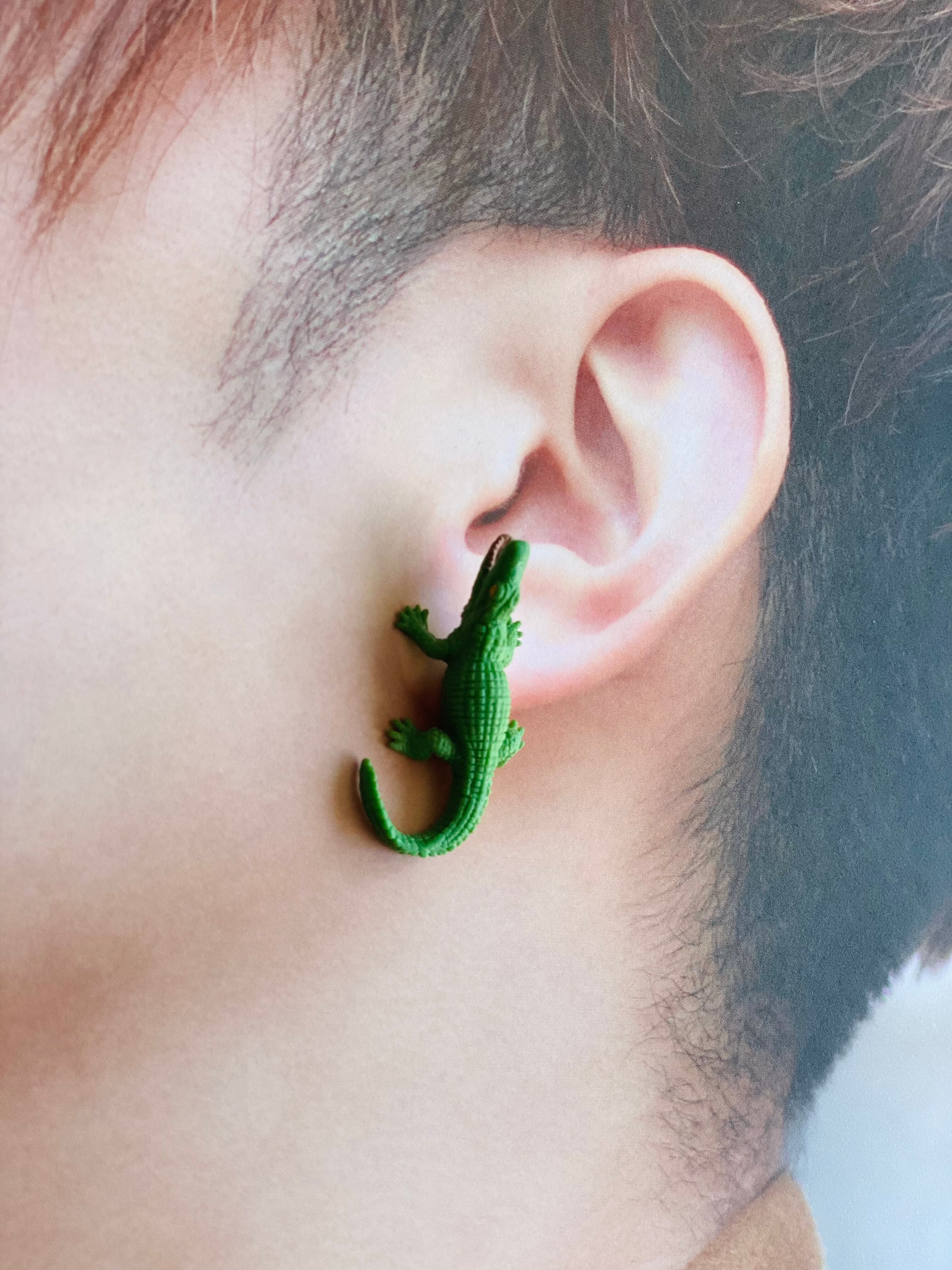 ワニ わに 鰐 クロコダイル アリゲーター カイマン 恐竜 爬虫類 トカゲ とかげ イグアナ 緑 グリーン リアル ミニチュア ジオラマ メンズ メンズピアス 動物園 動物 子供 個性的 シュール おもしろ 面白い 変な ゴスロリ 原宿 裏原 裏原宿 ピアス プレゼント ギフト ラッピング